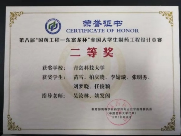 近几年制药工程专业学生积极参加各类学科竞赛,并取得了优异的成绩。如2017-2019年先后多次获得全国制药工程设计大赛二等奖和三等奖;2017年以来,本专业获批国家级大学生创新项目2项,省级大学生创新项目4项,校级创新项目20余项;2017年获得第五届全国医药院校药学/中药学专业大学生实验技能竞赛国家级二等奖1项、三等奖1项;2018年获得第二届全国医药院校药学/中药学世界大学生创新创业暨实验教学改革大赛一等奖2项;2019-2021年参加全国大学生生命科学创新创业大赛先后获得一等奖1项、二等奖4项和三等奖8项; 2019年获得中国TRIZ杯大学生创新方法大赛3等奖1项,此外学生还参加了山东省大学生科技节系列赛事等学科竞赛,获得省级一等奖2项,二等奖6项,三等奖3项。2021年指导企业获得第六届“创客中国”生物医药中小企业创新创业大赛一等奖。