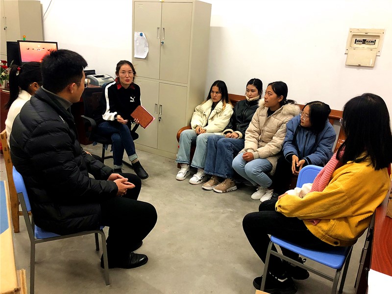 针对近日2019级新生期中考试所反映出的问题和新疆籍少数民族学生的学习特点,12月2日晚,化工学院举办2019级新疆籍少数民族学生学业“一对一”帮扶座谈会,学生处少数民族学生辅导员办公室巴合提努尔老师出席,化工学院2019级辅导员柳晓阳老师主持座谈会。