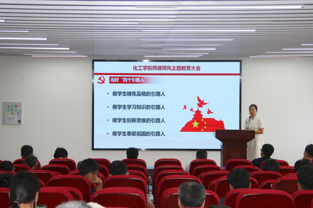 8月26日下午14:00,化工学院在CCF楼814报告厅召开新学期全体教职工大会暨学院师德师风主题教育大会。化工学院党政领导李金恒、孙明媚、田文德、刘仕伟、王许云、李春家以及全体教职工参加大会。会议由化工学院党委书记孙明媚主持。