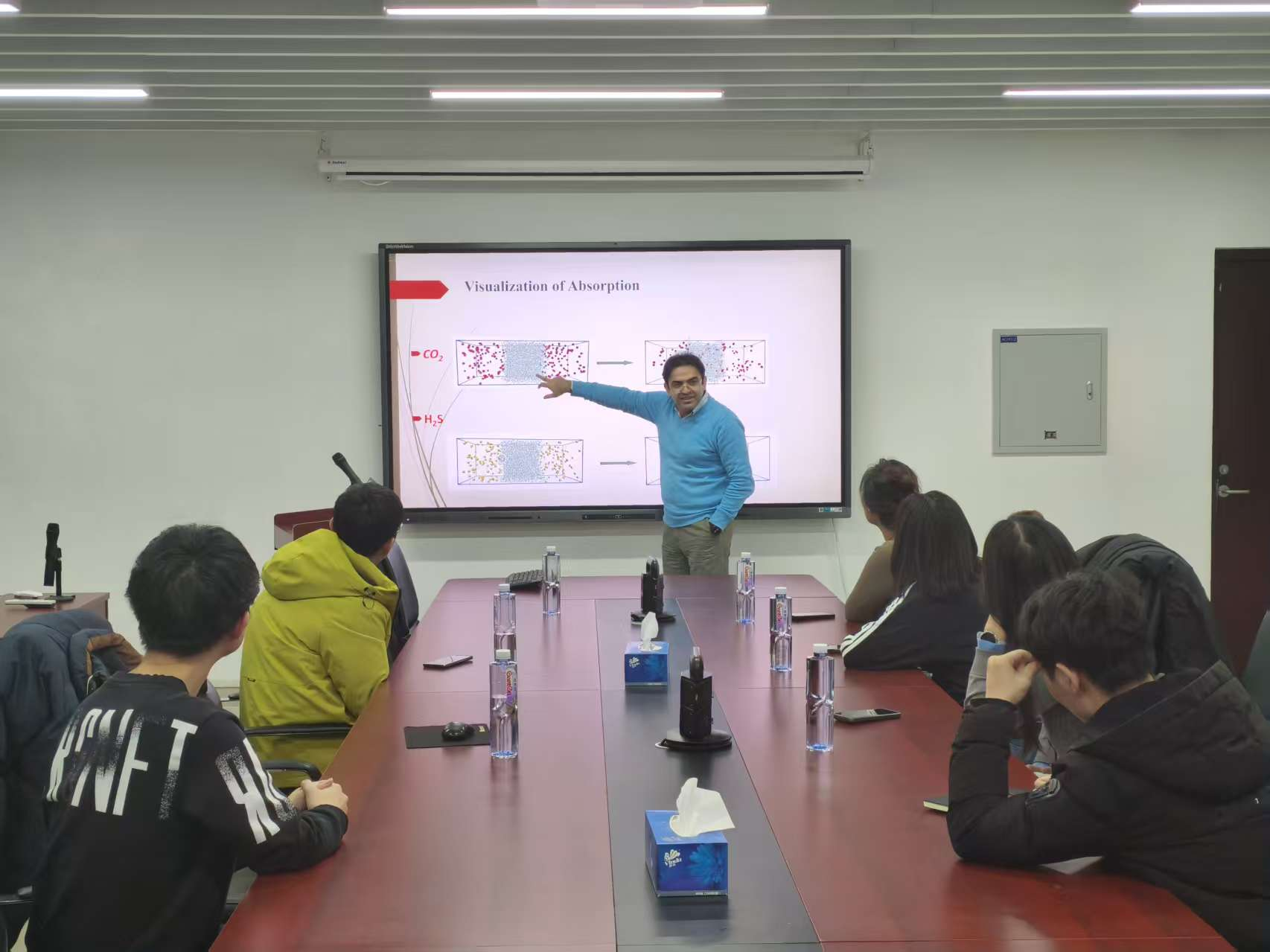 报告结束后,在刘彬老师的陪同下,Dr. Hossein参观了学院碳捕集科研实验室,详细了解了我院在CO2捕集与分离技术、胺基吸收剂开发以及实验测试平台建设等方面的研究条件与代表性成果。双方就未来在计算与实验协同研究、研究生联合培养及国际科研合作等方面的潜在合作方向进行了积极探讨。此次交流不仅有效拓展了研究生的国际学术视野,也为进一步推动学院在碳捕集领域的国际学术交流、拓展高层次国际合作渠道奠定了良好基础,对推动相关研究方向的高质量发展具有积极意义。