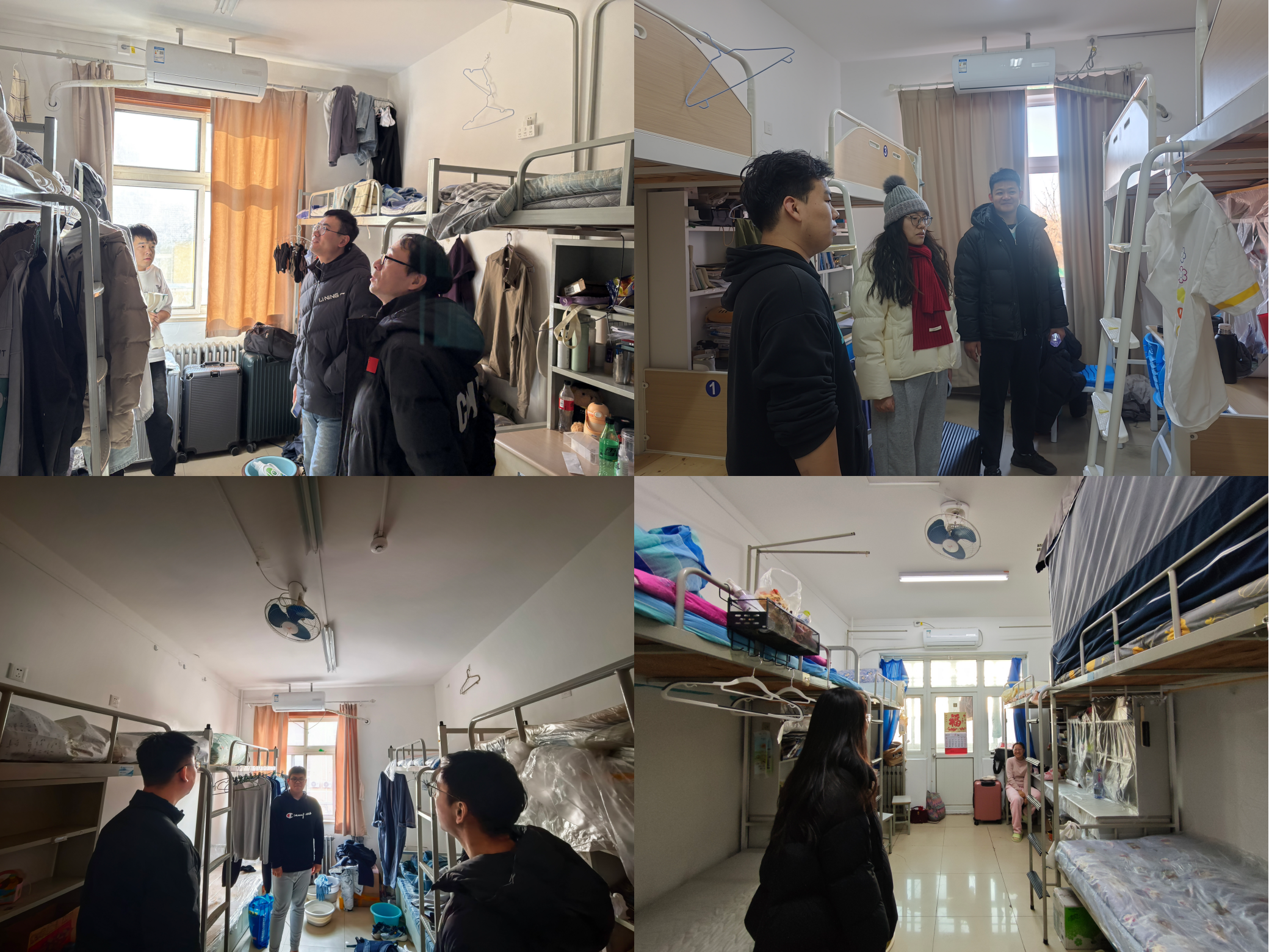 为切实做好寒假期间学生离校安全工作,增强学生安全防范意识,排查宿舍安全隐患,引导学生合理安排假期生活,1月22日下午,学院党委副书记兼副院长贾建闯、学工办主任兼团委书记杜宗杰及全体辅导员,深入各年级学生宿舍,开展寒假前集中走访检查与暖心关怀活动。