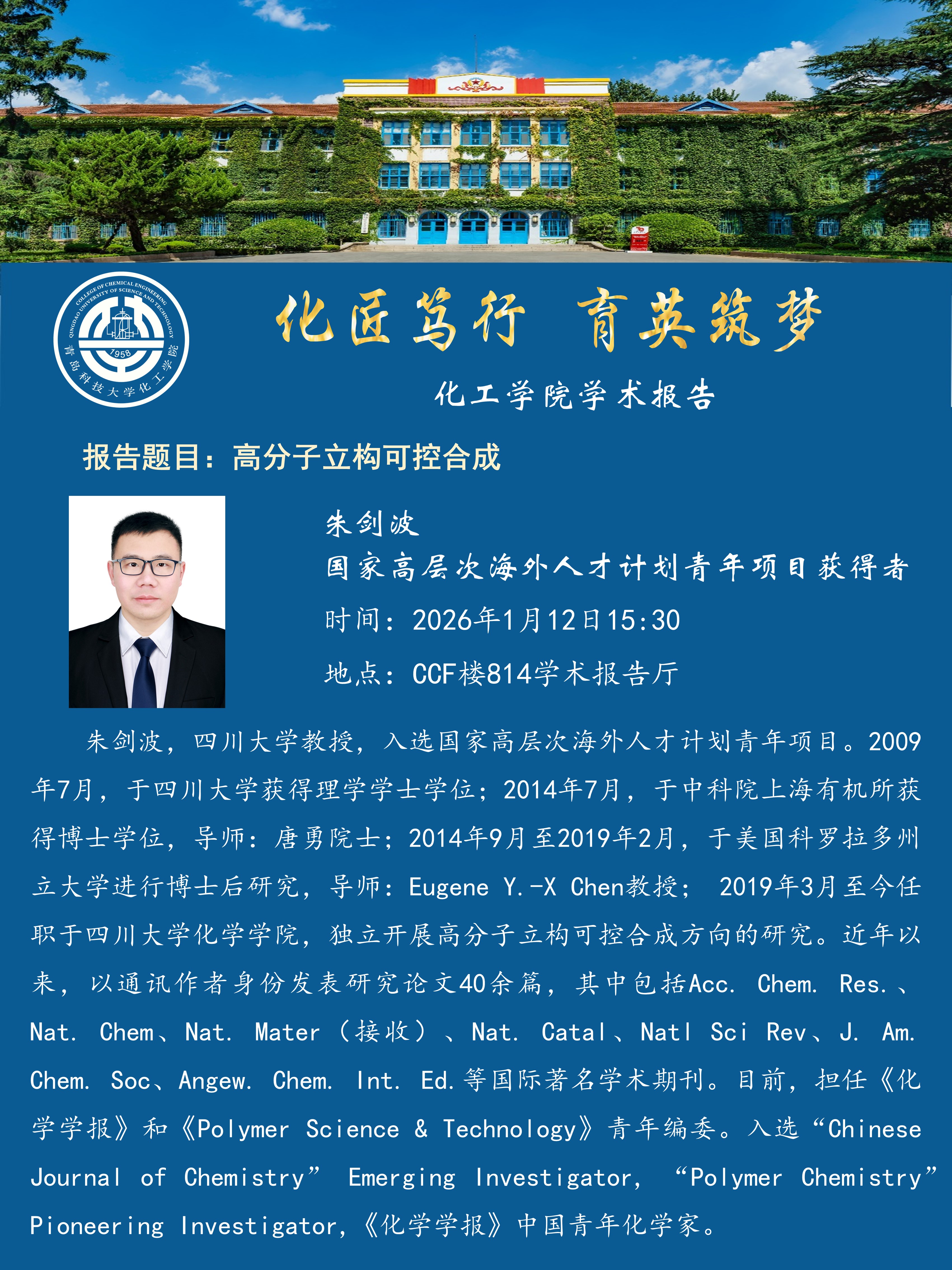 雷竞技投注学术报告——朱剑波:高分子立构可控合成