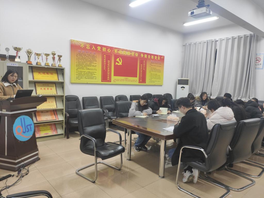 2020年12月24日晚,化工学院研究生第一党支部党员齐聚学院会议室,开展主题为“强化党员意识,争做模范先锋”主题党日活动。会议由支部副书记邬雅喃主持,全体支部党员参加会议。