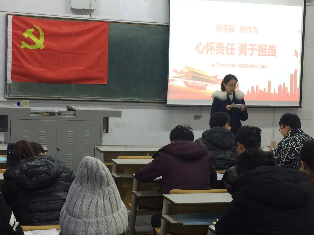 为进一步提高党员的政治思想,引导他们深刻了解改革开放以来的辉煌成就。12月11日下午,化工学院学生第一党支部“心怀责任,勇于担当”改革开放40周年专题学习会在一号教学楼104室举行。党支部书记耿赛主持,支部全体党员参加。