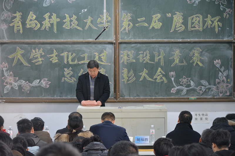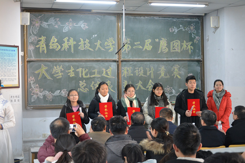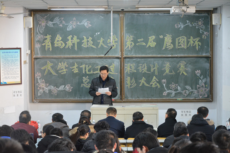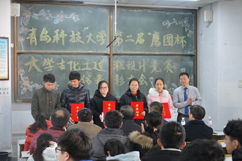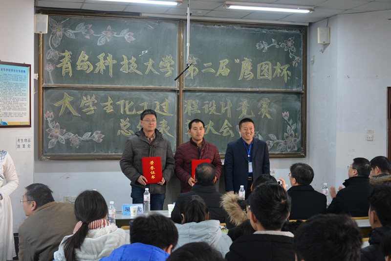 田文德介绍了比赛情况并宣读了青岛科技大学第二届“鹰图杯”大学生化工过程设计竞赛获奖名单。与会领导老师为获奖老师和学生颁奖。