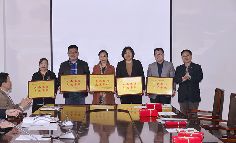 会上,妇委会主任孙佩珊宣读了表彰文件,李庆领、王霞、姜鲁华分别为获得2018年度工会工作先进单位的分工会和青岛科技大学教育先锋号、教育先锋的集体和个人颁发了奖牌。校工会主席郭曰铎宣读了《青岛科技大学工会“当好主人翁建功新时代”聚力攻坚行动方案》,重点就“六个一”、“智慧工会APP”、“五必访三慰问”等进行了深刻解读,号召学校各级工会组织发扬“党有号召,工会有行动”的光荣传统,以促进学校发展、竭诚服务教工为原则,紧紧围绕学校十大攻坚突破任务,凝心聚力、攻坚突破,为加快推进“双一流”和“五有”高水平大学建设做出工会特有的贡献。