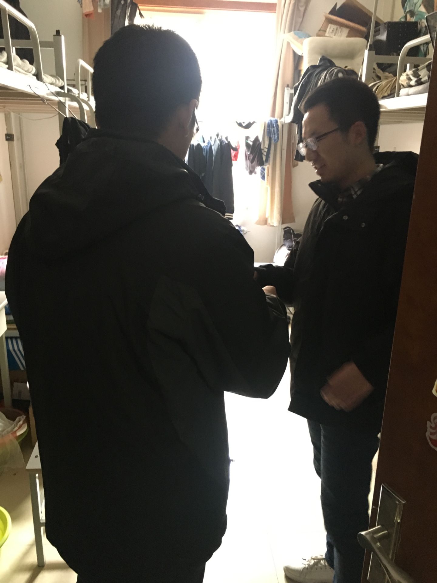 会前,支部书记刘彬布置了走寝安排,强调了走寝的目的和意义,在排除寝室安全隐患的同时,要切实了解学生在学习、生活过程中的困难,倾听学生对学院教育教学等方面的意见和建议。活动开展期间,大家对照学校宿舍规范标准进行逐一检查,温馨提醒同学们杜绝使用违规电器,保证用电安全。并亲切地和同学们拉起家常,询问同学们学习、生活等方面的情况,解答同学们的问题,和同学们嘘寒问暖,提醒同学注意天气变化。在研三学生的寝室,支部书记刘彬询问了研三同学的科研及就业情况,并在交谈中积极地为研三同学解答了对于工作选择上的疑问,让他们能更好的投入到接下来的研究生生活中。