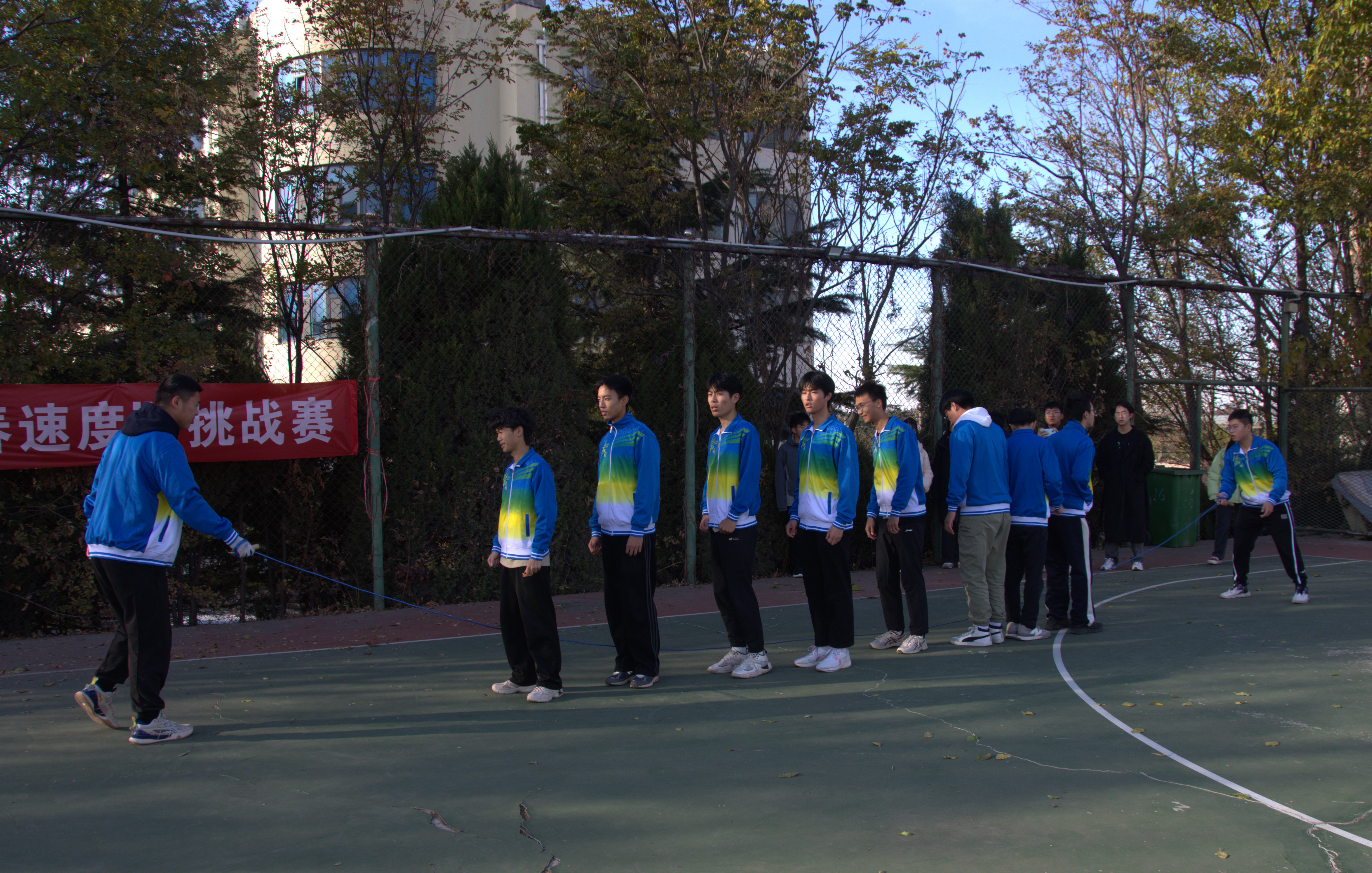 为全面推进学校体育综合改革进程,响应“爱体育,兴科大”的号召,在紧张的学习之余,缓解同学们的学习压力,丰富校园生活,学校于11月28日下午两点半在东山篮球场举办“青春速度”挑战赛,化工学院参加了此次比赛。