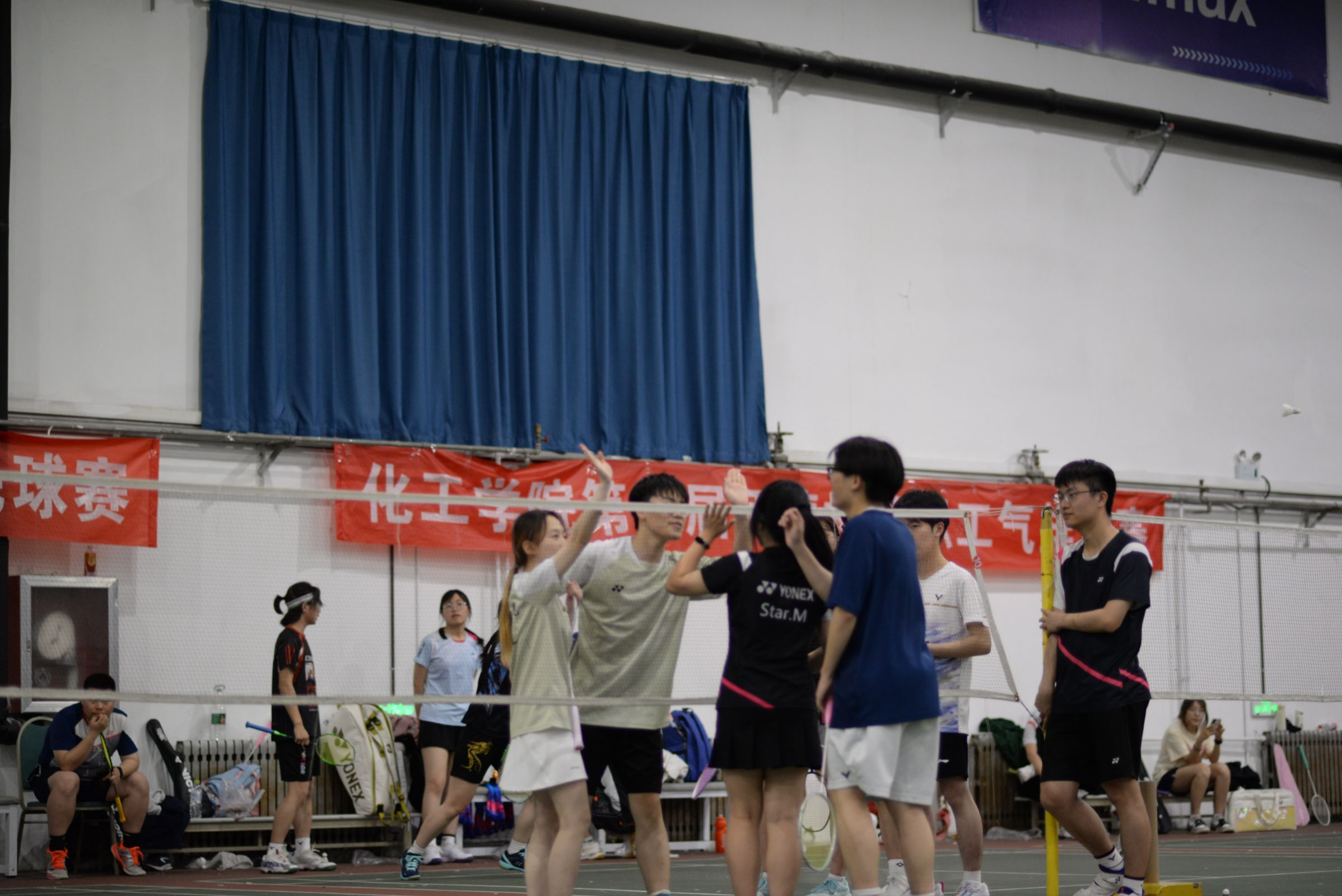 比赛过程中,化工学子们展现出高超的技巧和团队精神。场上的选手紧张地盯着飞行中的羽毛球,迅速反应并击球。他们运用各种技巧,如扣杀、吊球、推挡和挑球等。场上的选手们的每一个动作都充满了力量,力求得分。在比赛间隙,化工学子们进行简短的休息和战术调整。教练也适时给出建议和鼓励,帮助选手们更好地应对比赛。最终化工学院以优异的总成绩获得了四方校区第三名。